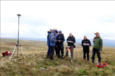 Now surveying takes time, a lot of it, and watching someone else do it is definitely not a spectator sport. Anyway we stood patiently by while John and Graham and a band of helpers set up their equipment on Tinside Rigg. We even watched patiently for an full hour while they surveyed with level and staff to find the definitive point on the col.